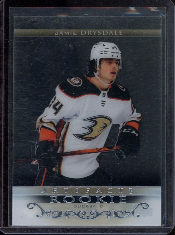 The Jamie Drysdale 2021 Upper Deck Artifacts #175 Clear Cut Rookies card is 1 of 37 Jamie Drysdale's card variations in the 2021 Upper Deck Artifacts set being tracked by Sports Card Investor, including Base /999, Neon Green, Rose Gold, Turquoise, and Ruby /499.