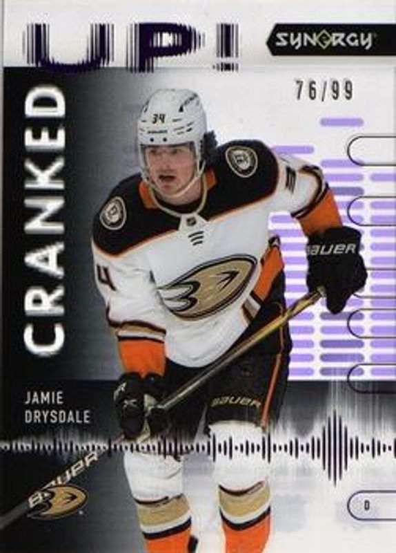 The Jamie Drysdale 2022 Upper Deck Synergy #CU-JD Cranked Up - Purple /99 card is 1 of 8 Jamie Drysdale's card variations in the 2022 Upper Deck Synergy set being tracked by Sports Card Investor, including Cranked Up /699, Cranked Up - Red /399, Cranked Up - Blue /249, Cranked Up - Green /65, and Cranked Up - Pink /25.