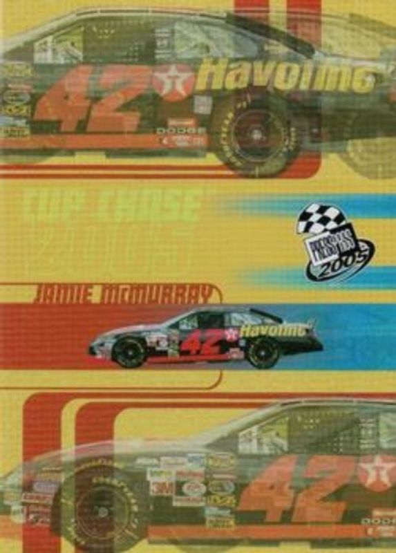 The Jamie McMurray 2005 Press Pass #CCR-4 Cup Chase card is 1 of 10 Jamie McMurray's card variations in the 2005 Press Pass set being tracked by Sports Card Investor, including Base, Beckett Samples, Platinum /100, eBay Previews /5, and Autographs.