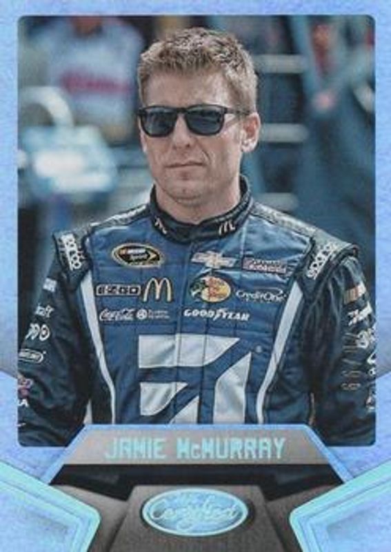 The Jamie McMurray 2016 Certified NASCAR #13 Mirror Silver /15 card is 1 of 54 Jamie McMurray's card variations in the 2016 Certified NASCAR set being tracked by Sports Card Investor, including Base /99, Mirror Red /25, Mirror Blue /20, Mirror Gold /15, and Mirror Orange /15.