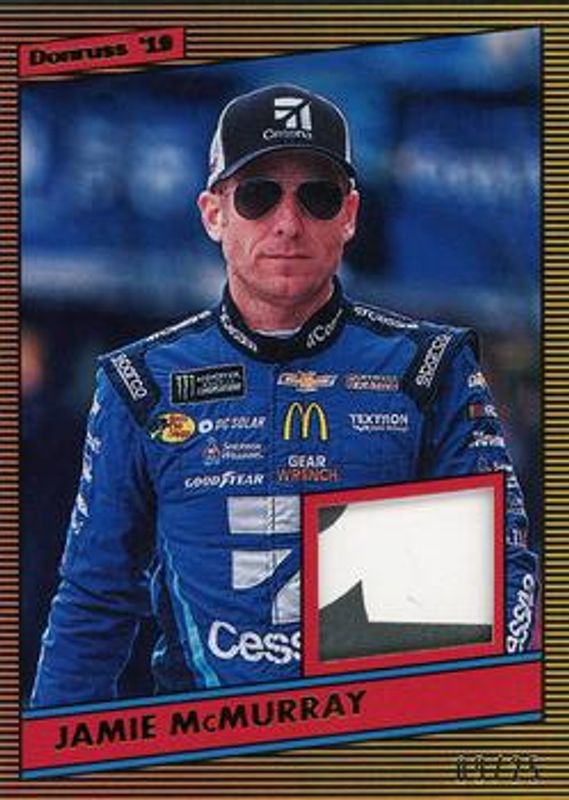 The Jamie McMurray 2019 Donruss NASCAR #86-JM 1986 Retro Relics Holo - Gold /25 card is 1 of 37 Jamie McMurray's card variations in the 2019 Donruss NASCAR set being tracked by Sports Card Investor, including #62 Base, #127a Base, #62 Silver, #127b Silver, and #127a Gold /299.