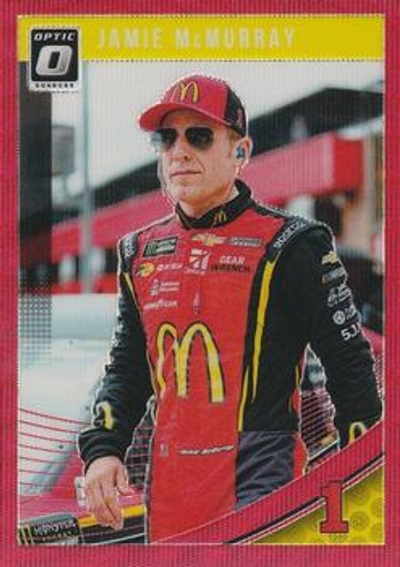 The Jamie McMurray 2019 Donruss NASCAR #32 Optic Red Wave card is 1 of 37 Jamie McMurray's card variations in the 2019 Donruss NASCAR set being tracked by Sports Card Investor, including #62 Base, #127a Base, #62 Silver, #127b Silver, and #127a Gold /299.