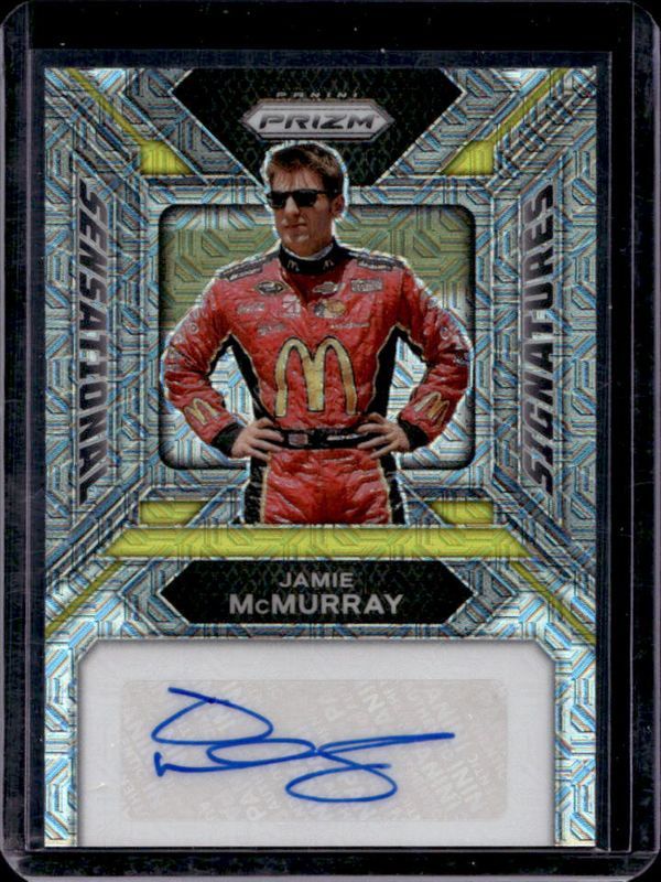 The Jamie McMurray 2024 Prizm NASCAR #SS-MCM Sensational Signatures - Mojo /25 card is 1 of 78 Jamie McMurray's card variations in the 2024 Prizm NASCAR set being tracked by Sports Card Investor, including Base, Blue Ice, Green, Green Ice, and Red Ice.