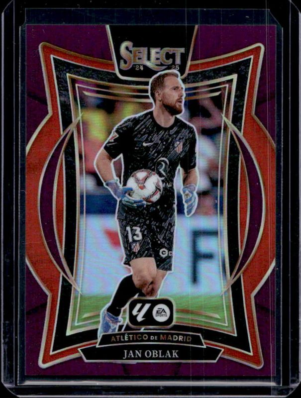 The Jan Oblak 2024 Select La Liga #100 Base Purple /99 card is 1 of 29 Jan Oblak's card variations in the 2024 Select La Liga set being tracked by Sports Card Investor, including Base, Base Blue, Base Checkerboard, Base Flash, and Base Green Ice.