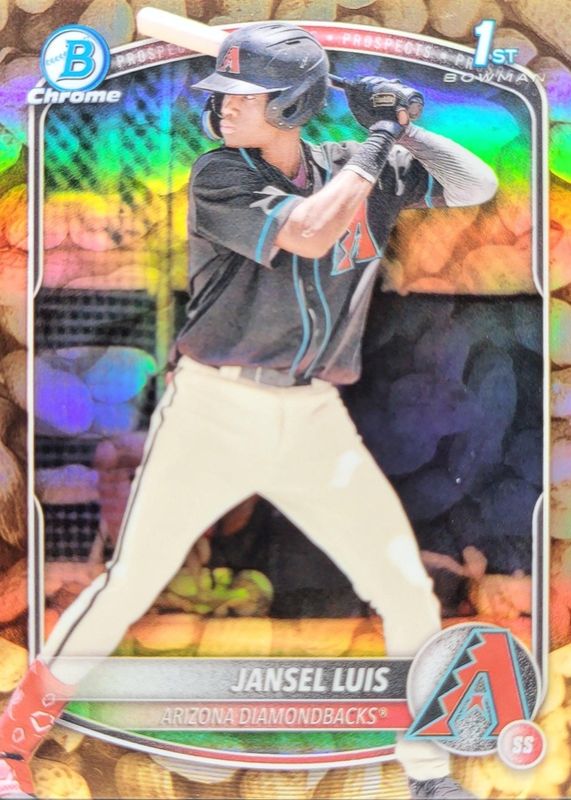 This card is 1 of 88 Jansel Luis' card variations in the 2025 Bowman set being tracked by Sports Card Investor, including Chrome Prospects (1st), Chrome Prospects - Gumball Refractor (1st), Chrome Prospects - Mini Diamond Refractor (1st), Chrome Prospects - Pearl Refractor (1st), and Chrome Prospects - Popcorn Refractor (1st).