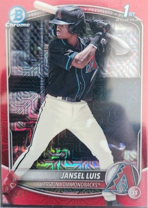 Best Prices Available For Sale of Jansel Luis 2025 Bowman #BCP-84 Chrome Prospects - Red Refractor /5 (1st)