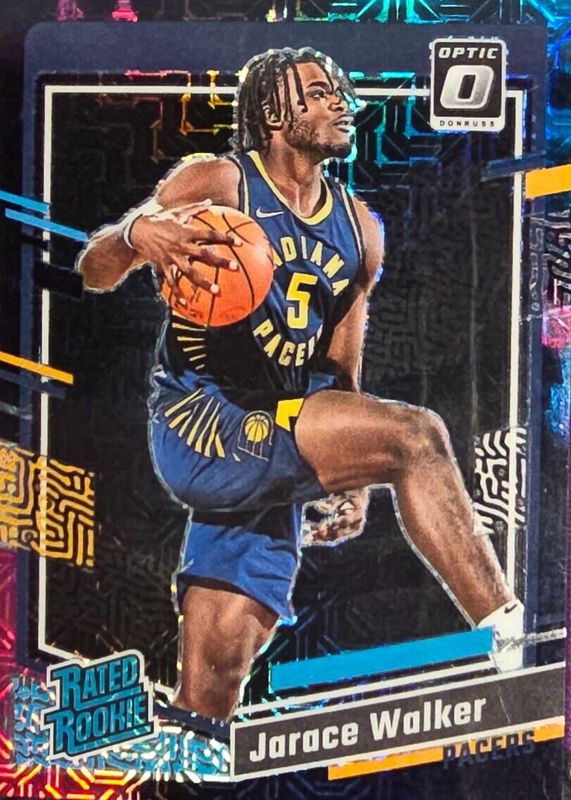 The Jarace Walker 2023 Optic #226 Choice Nebula /1 Rookie card in Raw condition has not changed in price in the last 30 days and was last sold for $639.46 .