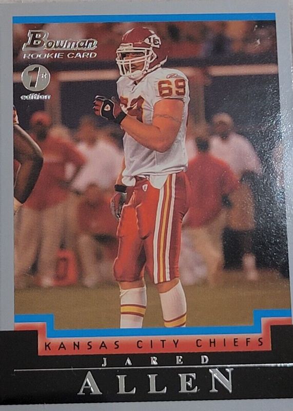 This card is 1 of 4 Jared Allen's card variations in the 2004 Bowman set being tracked by Sports Card Investor, including Base, Gold, and White /165.