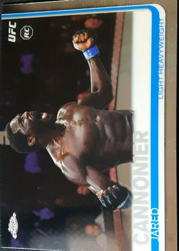 The Jared Cannonier 2019 Topps Chrome UFC #98 Base Rookie card in Raw condition has not changed in price in the last 30 days and was last sold for $1.75 .