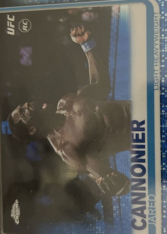 The Jared Cannonier 2019 Topps Chrome UFC #98 Blue Wave Refractor /75 Rookie card in Raw condition has not changed in price in the last 30 days and was last sold for $7.44 .