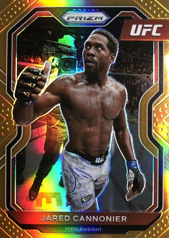 This card is 1 of 16 Jared Cannonier's card variations in the 2021 Prizm UFC set being tracked by Sports Card Investor, including Silver, Red /275, Blue /199, Purple /149, and Premium Box Set /99.