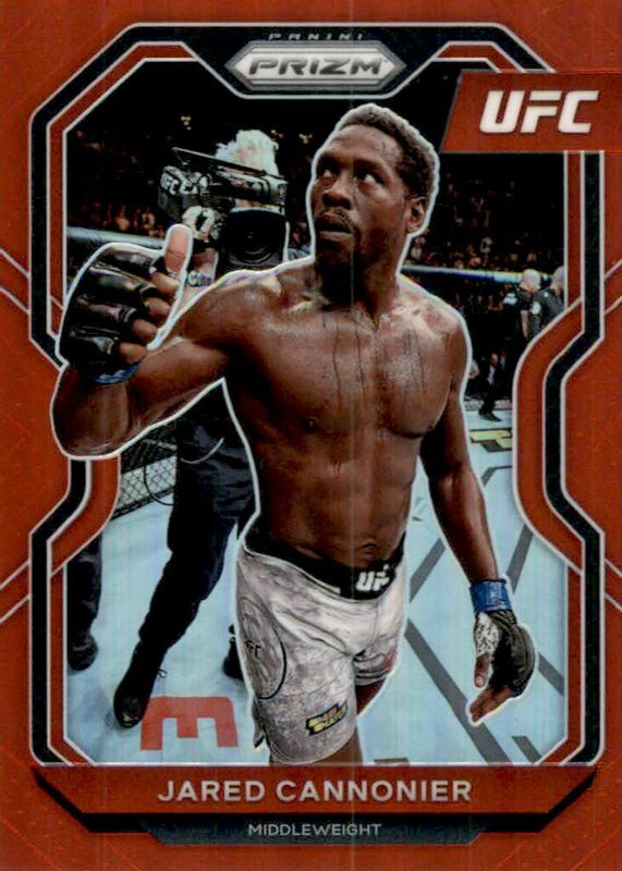 This card is 1 of 16 Jared Cannonier's card variations in the 2021 Prizm UFC set being tracked by Sports Card Investor, including Silver, Blue /199, Purple /149, Orange /99, and Premium Box Set /99.