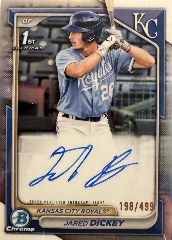 2024 BOWMAN CHROME 1ST JARED DICKEY AUTO REFRACTOR 491/499 CPA-JDI KC Royals