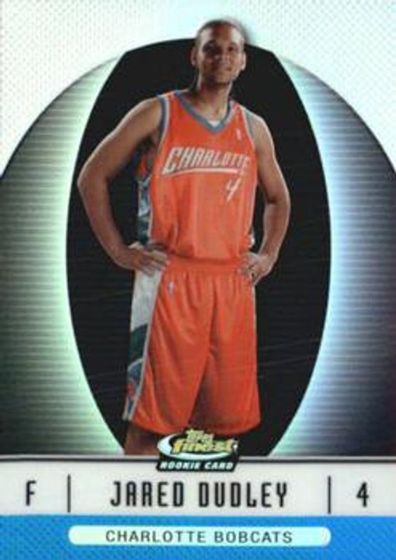 The Jared Dudley 2006 Topps Finest #122 Blue Refractor /299 card is 1 of 14 Jared Dudley's card variations in the 2006 Topps Finest set being tracked by Sports Card Investor, including Base /539, X-Fractor /25, Printing Plates Black /1, Printing Plates Cyan /1, and Printing Plates Magenta /1.