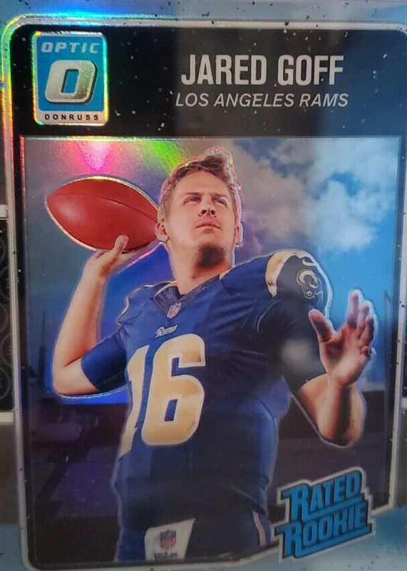 The Jared Goff 2016 Optic #172 Carolina Blue /50 Rookie card in Raw condition has not changed in price in the last 30 days and was last sold for $129.95 .