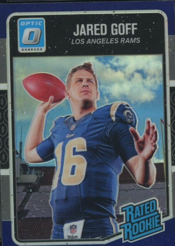 The Jared Goff 2016 Optic #172 Purple Rookie card in Raw condition has moved down -$9.23 (-73.8%) in the last 30 days and was last sold for $3.27 .