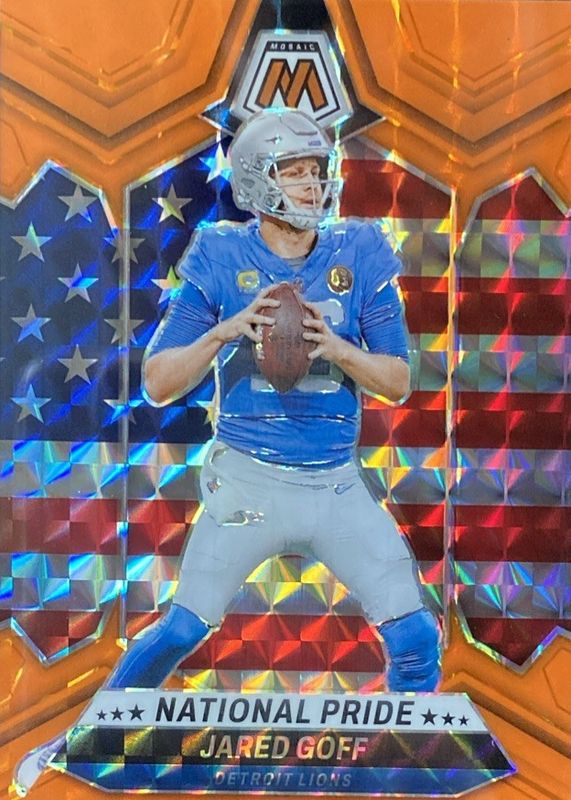 Recent Sales of Jared Goff 2024 Mosaic #252 National Pride - Orange Fluorescent /25 Raw