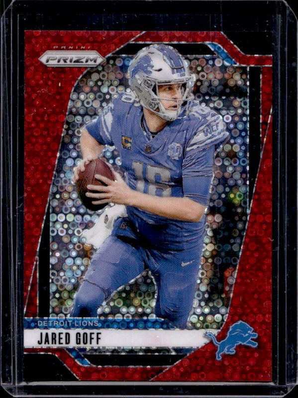 The Jared Goff 2024 Prizm #92 No Huddle Red /75 card is 1 of 94 Jared Goff's card variations in the 2024 Prizm set being tracked by Sports Card Investor, including Base, Choice Blue Yellow Green, Choice Silver, Disco, and Green.