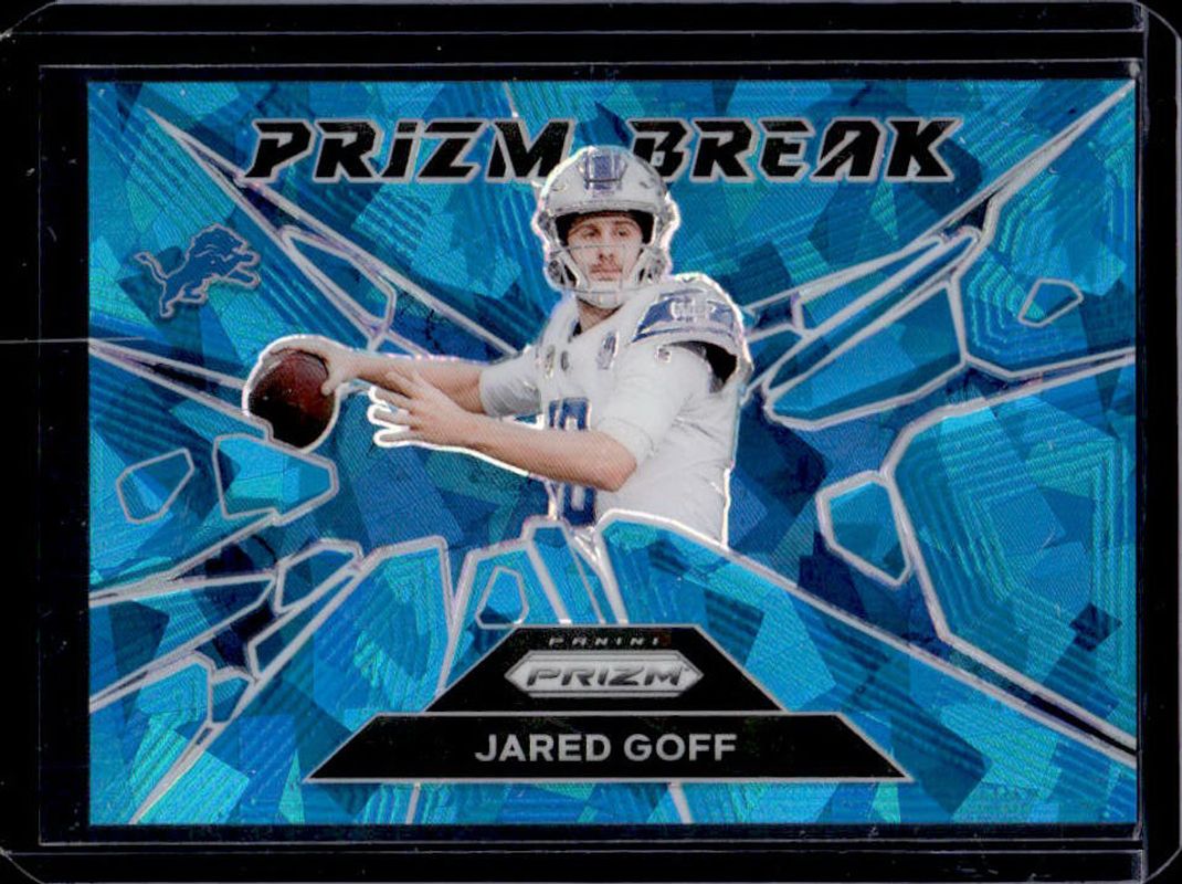 The Jared Goff 2024 Prizm #9 Prizm Break - Blue Ice /99 card is 1 of 94 Jared Goff's card variations in the 2024 Prizm set being tracked by Sports Card Investor, including Base, Choice Blue Yellow Green, Choice Silver, Disco, and Green.