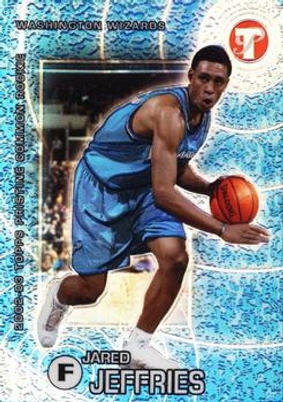 The Jared Jeffries 2002 Topps Pristine #81 Refractor /50 Rookie card is 1 of 9 Jared Jeffries' card variations in the 2002 Topps Pristine set being tracked by Sports Card Investor, including #81 Base, #82 Base, #83 Base, #83 Gold Refractor /99, and #81 Gold Refractor /99.