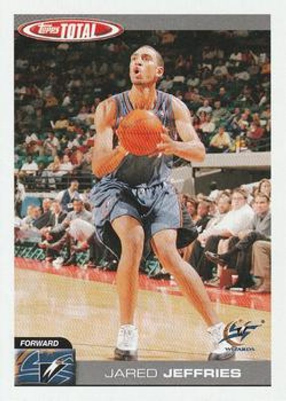 The Jared Jeffries 2004 Topps Total #260 Base card is 1 of 10 Jared Jeffries' card variations in the 2004 Topps Total set being tracked by Sports Card Investor, including Silver, Press Plates Black Front /1, Press Plates Black Reverse /1, Press Plates Cyan Front /1, and Press Plates Cyan Reverse /1.