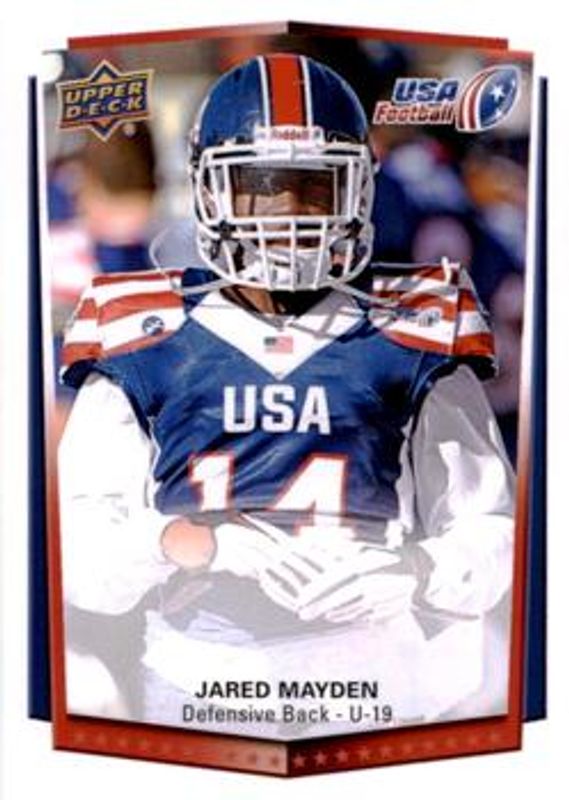 The Jared Mayden 2015 Upper Deck USA #41 Base card is 1 of 4 Jared Mayden's card variations in the 2015 Upper Deck USA set being tracked by Sports Card Investor, including #62 Base, #41 Autograph, and #62 Autograph.
