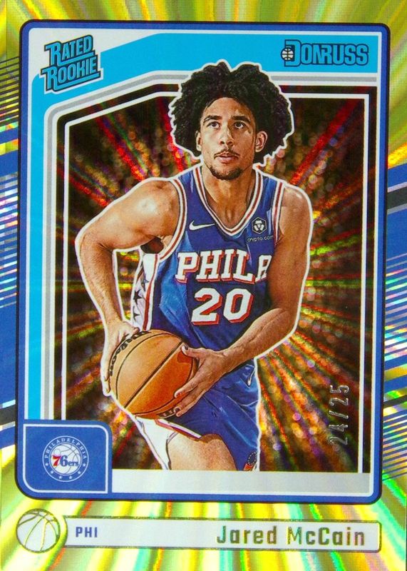 2024-25 Panini Donruss Jared Mccain #228 Rated Rookie RC Holo Yellow Laser /25
