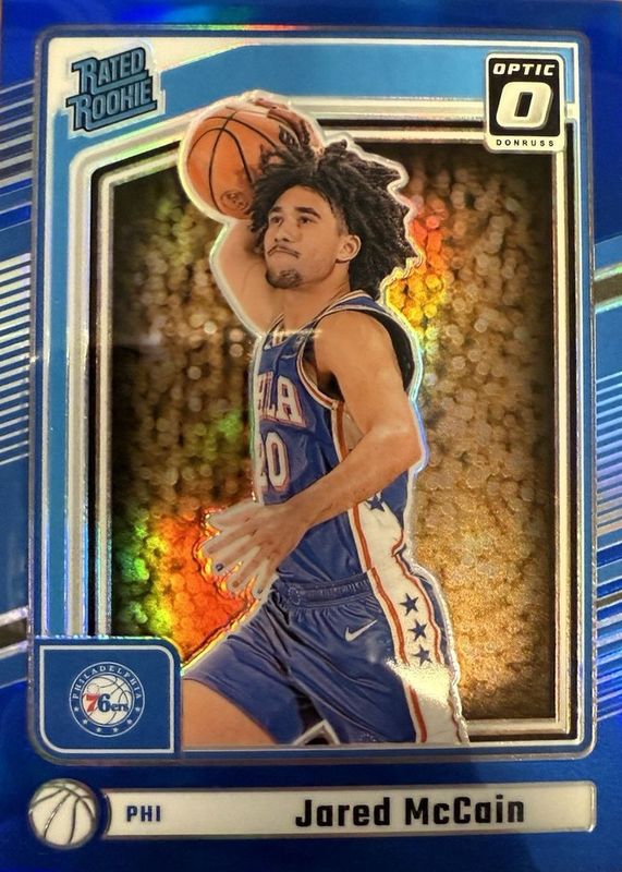 2024-25 Panini Donruss Jared McCain Optic Rated Rookie Preview Blue Prizm /49
