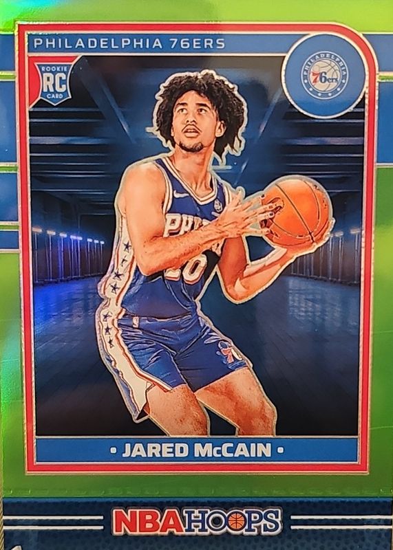 2024-25 Panini NBA Hoops #246 Jared McCain RC Premium Lime Green Prizm /149