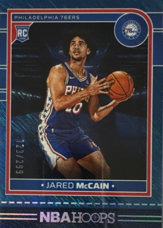 This card is 1 of 58 Jared McCain's card variations in the 2024 Hoops set being tracked by Sports Card Investor, including Base, Blue, Impulse, Premium, and Premium Checkerboard.