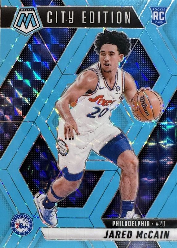 2024-25 Panini Mosaic Jared McCain City Edition Blue Fluorescent Mosaic 1/75 RC