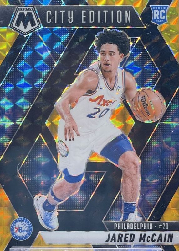 This card is 1 of 205 Jared McCain's card variations in the 2024 Mosaic set being tracked by Sports Card Investor, including Base, City Edition, NBA Debut, Choice Red & Green, and City Edition - Choice Red & Green.