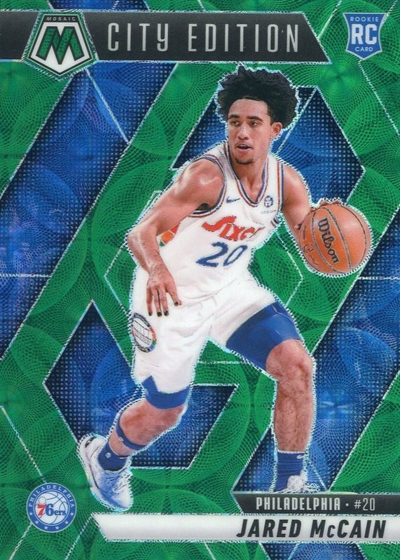 Auctions Ending Soon for Jared McCain 2024 Mosaic #277 City Edition - International Green /15 Rookie RAW