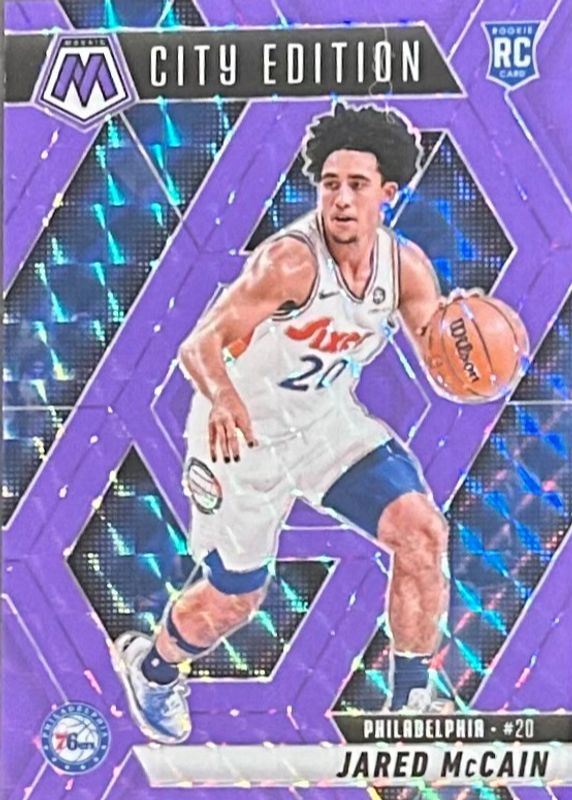 2024-25 Panini Mosaic purple fluorescent Jared Mccain City Edition 109/249