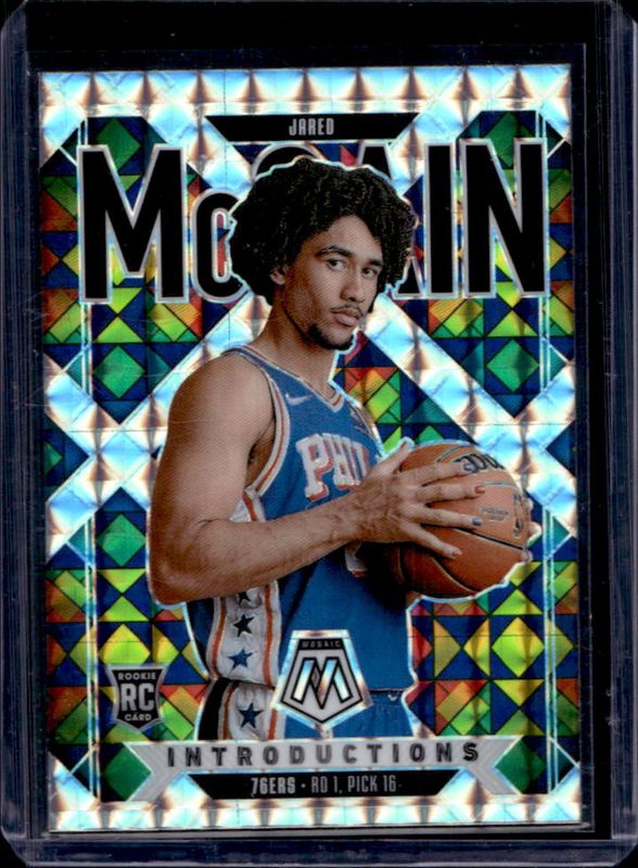 The Jared McCain 2024 Mosaic #1 Introductions - Mosaic Rookie card is 1 of 429 Jared McCain's card variations in the 2024 Mosaic set being tracked by Sports Card Investor, including Base, City Edition, NBA Debut, Choice Red & Green, and City Edition - Choice Red & Green.