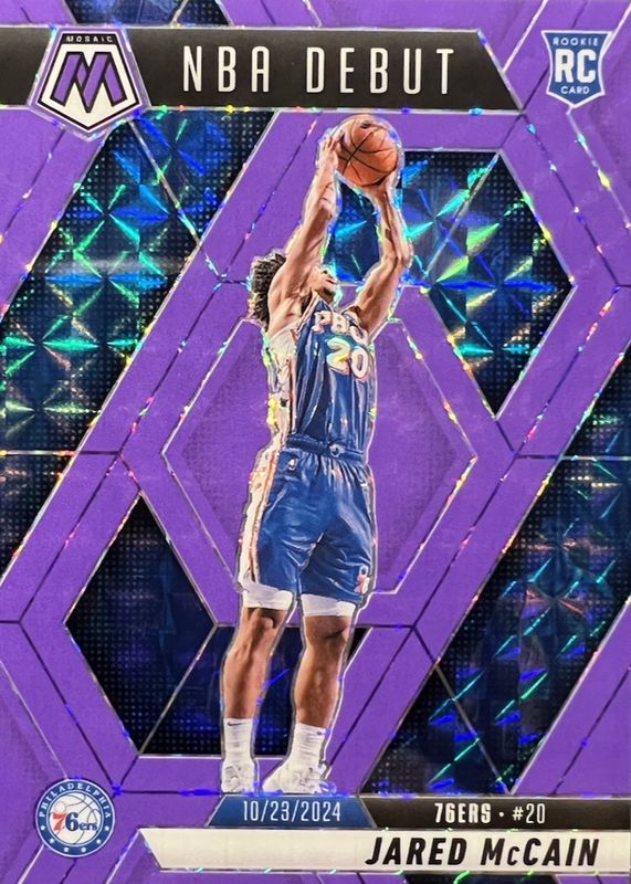 2024 MOSAIC NBA DEBUT PURPLE FLUORESCENT /249 JARED MCCAIN RC 76ERS