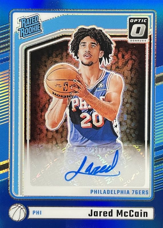 2024-25 Panini Donruss Optic Jared Mccain #313 Blue Rated Rookie RC Auto /49