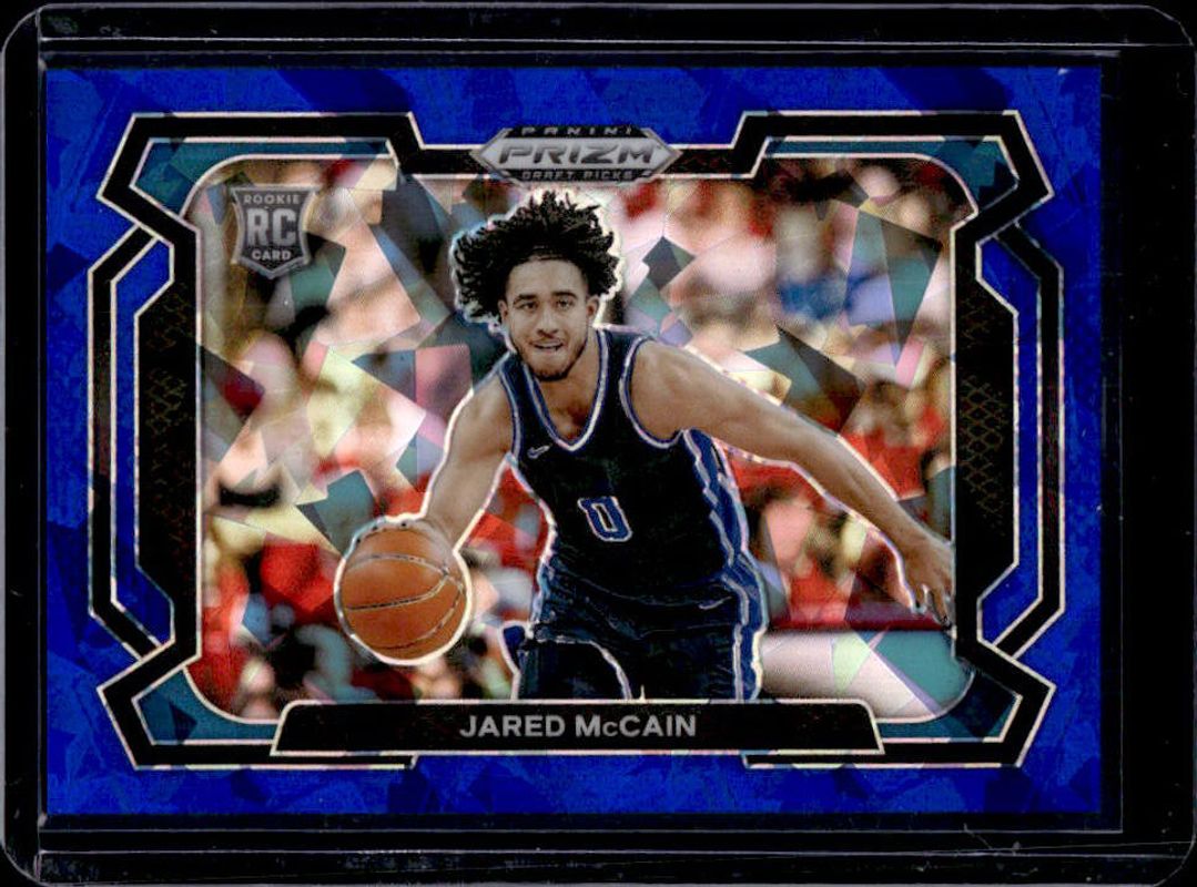 The Jared McCain 2024 Prizm Draft Picks #35b Blue Ice /99 Rookie card is 1 of 203 Jared McCain's card variations in the 2024 Prizm Draft Picks set being tracked by Sports Card Investor, including #35b Base, #35 Base, #35 Variation, #35b Green, and #35 Green.