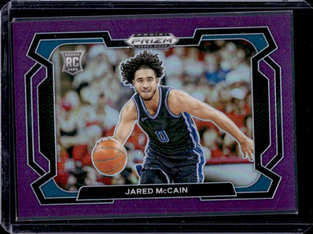 The Jared McCain 2024 Prizm Draft Picks #35b Purple /75 Rookie card is 1 of 203 Jared McCain's card variations in the 2024 Prizm Draft Picks set being tracked by Sports Card Investor, including #35b Base, #35 Base, #35 Variation, #35b Green, and #35 Green.