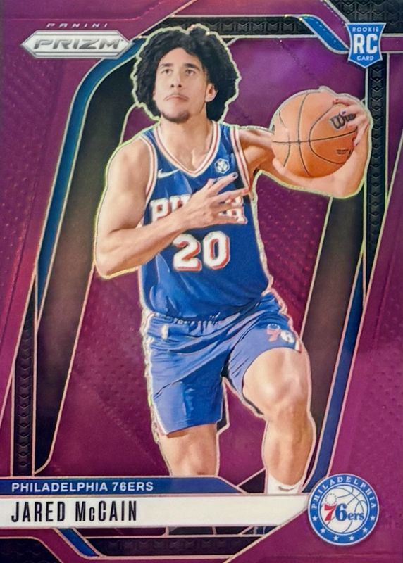The Jared McCain 2024 Prizm #222 Purple /99 Rookie card in Raw condition has moved up $3.10 (+9.4%) in the last 30 days and was last sold for $36.00 .
