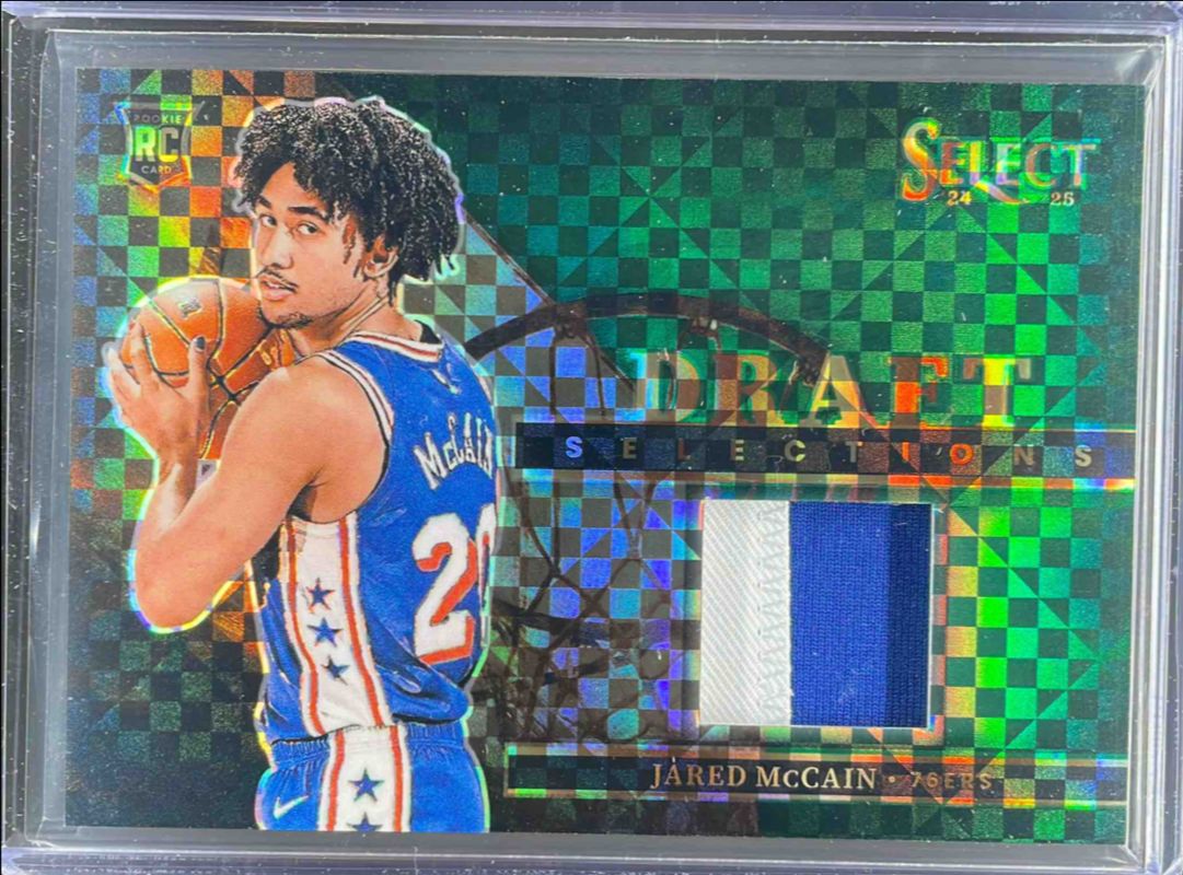 Jared McCain 2024 Select #DSM-MCC Draft Selections Memorabilia Green /5 Rookie RAW Price Guide