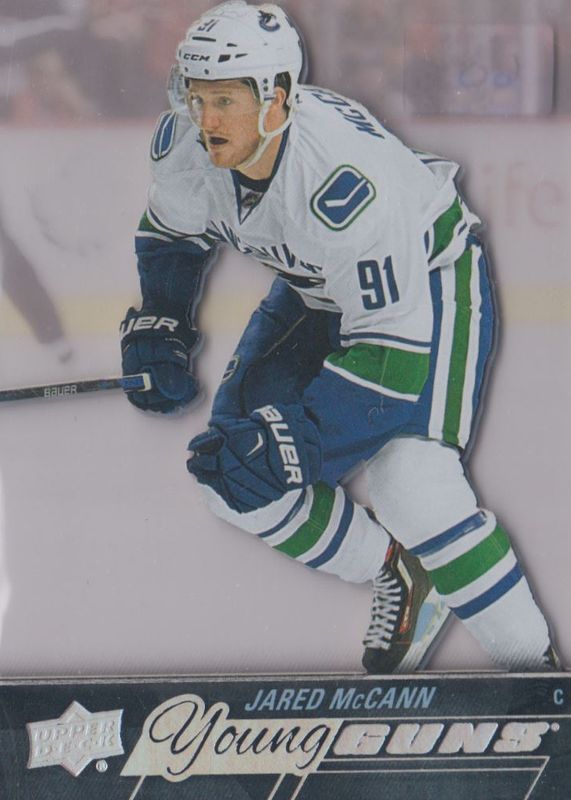 This card is 1 of 8 Jared McCann's card variations in the 2015 Upper Deck set being tracked by Sports Card Investor, including Young Guns Base, Young Guns Canvas, Young Guns - Jumbo, Young Guns - Foil, and Young Guns - UD Exclusives /100.