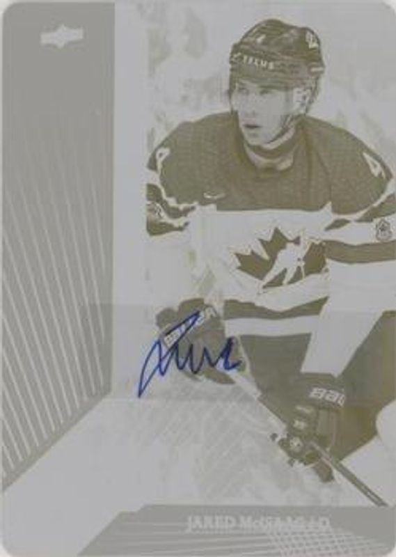 The Jared McIsaac 2019 Upper Deck Team Canada Juniors #111 Printing Plates Yellow /1 card is 1 of 20 Jared McIsaac's card variations in the 2019 Upper Deck Team Canada Juniors set being tracked by Sports Card Investor, including #33 Base, #111 Base, #33 Jersey Relics, #33 Premium Swatch Autographs /199, and #111 Exclusives /150.