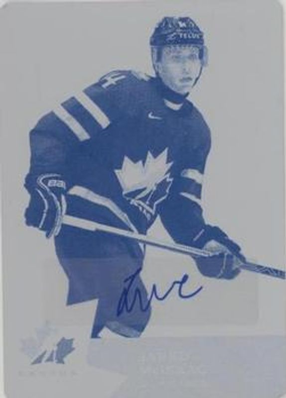 The Jared McIsaac 2020 Upper Deck Team Canada Juniors #33 Printing Plates Cyan /1 card is 1 of 29 Jared McIsaac's card variations in the 2020 Upper Deck Team Canada Juniors set being tracked by Sports Card Investor, including #88 Base, #33 Base, #104 Base, #104 Exclusives /165, and #88 Exclusives /165.