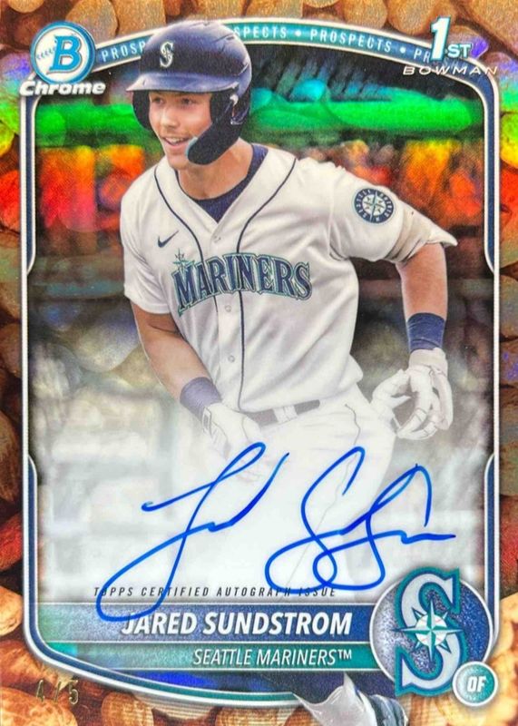 Jared Sundstrom 2025 Bowman #CPA-JSU Chrome Prospect Auto - Peanuts Refractor /5 (1st) RAW Price Guide