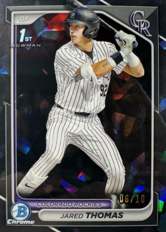 Auctions Ending Soon for Jared Thomas 2024 Bowman Draft Sapphire Edition #BDC-11 Chrome - Black /10 (1st) RAW