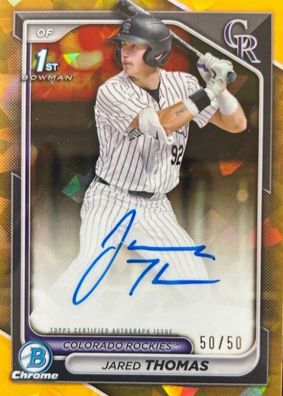 2024 Bowman Draft Sapphire Jared Thomas 1st Gold Autograph /50 Rockies