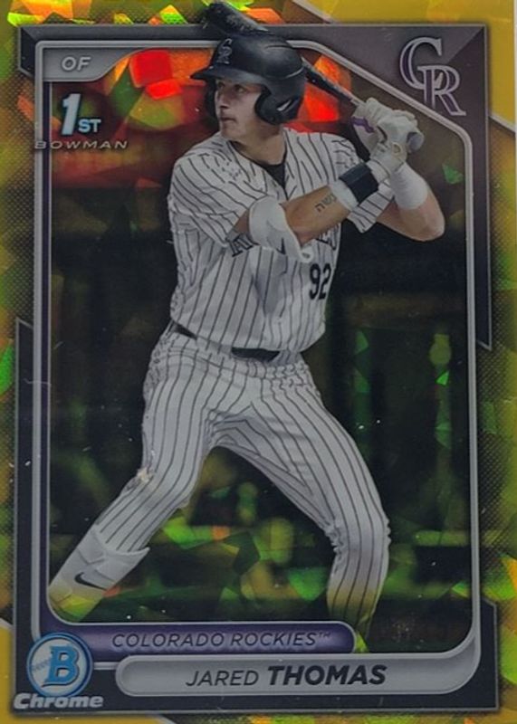 Jared Thomas 2024 Bowman Draft Sapphire Edition #BDC-11 Chrome - Yellow /75 (1st) RAW Price Guide
