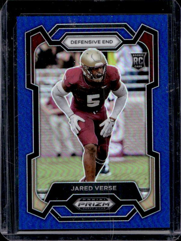 The Jared Verse 2024 Prizm Draft Picks #114 Blue /199 Rookie card is 1 of 101 Jared Verse's card variations in the 2024 Prizm Draft Picks set being tracked by Sports Card Investor, including Base, Green, Purple Wave, Red Ice, and Ruby Wave.