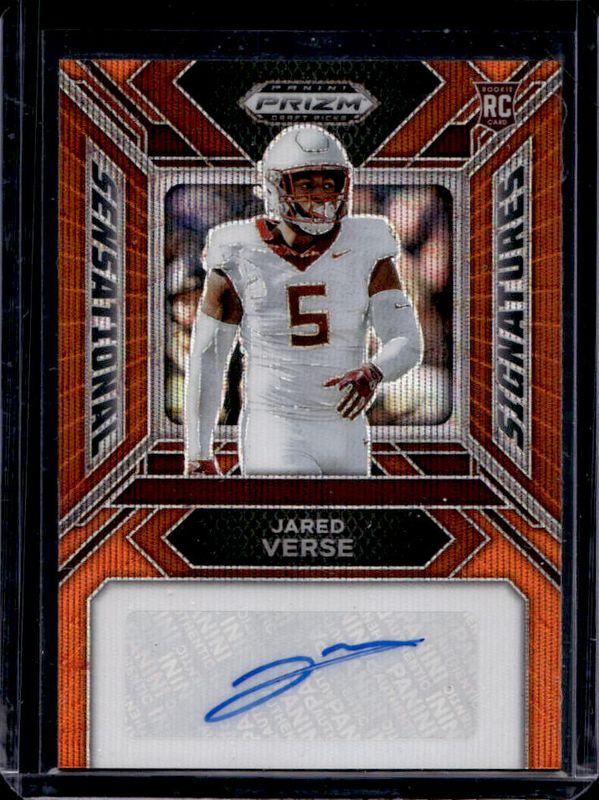 The Jared Verse 2024 Prizm Draft Picks #SS-JVE Sensational Signatures - Orange Wave Rookie card is 1 of 101 Jared Verse's card variations in the 2024 Prizm Draft Picks set being tracked by Sports Card Investor, including Base, Green, Purple Wave, Red Ice, and Ruby Wave.